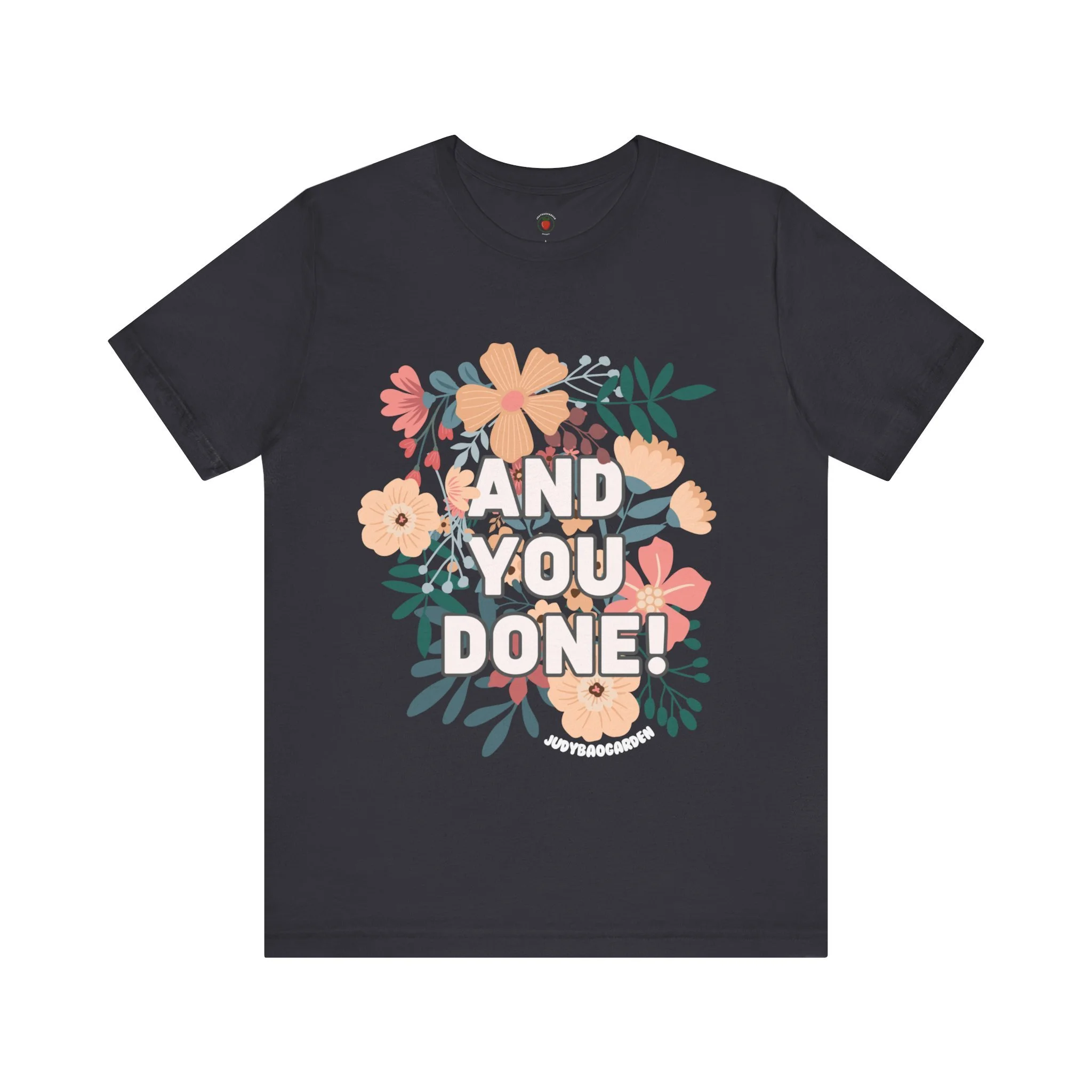 Shop › And You Done! Tropical Tee Image 1 of 1 And You Done! Tropical Tee $30.00 Classic unisex jersey short sleeve tee100% Airlume combed and ringspun cotton (fiber content may vary for different colors)Light fabricDual side seamsRuns true to size Color: Select Color Dark Grey Size: Select Size S M L XL Quantity: Add To Cart Added! Classic unisex jersey short sleeve tee100% Airlume combed and ringspun cotton (fiber content may vary for different colors)Light fabricDual side seamsRuns true to size